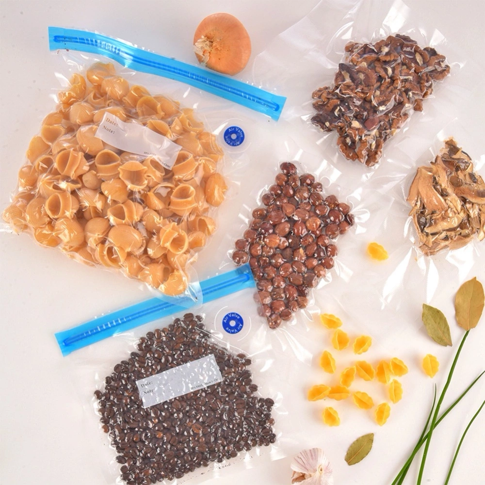 - Praktyczne w codziennym użytkowaniu - Idealne do przechowywania żywności w lodówce, zamrażarce oraz szafkach kuchennych. Jedna strona woreczka jest gładka, druga ma specjalną strukturę z wypustkami, ułatwiającą równomierne odsysanie powietrza.