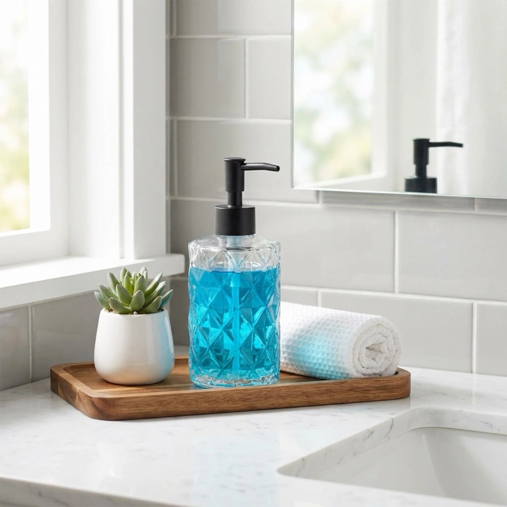 - Element dekoracyjny w łazience lub kuchni - Korzystanie z dozownika pozwala na estetyczne przechowywanie mydła lub płynu do naczyń. Dodatkowo umożliwia zakup płynu lub mydła w dużym, bardziej ekonomicznym i ekologicznym opakowaniu.