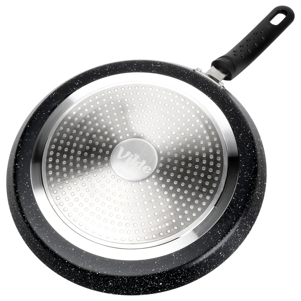 Nieprzywierająca patelnia do naleśników o wyjątkowym, ponadczasowym wyglądzie. Patelnia posiada modny design, dzięki czemu efektownie prezentuje się w kuchni. Z jej pomocą usmażymy pyszne naleśniki, placki, jak i omlety. Niezastąpiona w każdej kuchni, ułatwia gotowanie i nadaje potrawom perfekcyjny wygląd. Wykonana z najwyższej jakości materiałów, odpowiednio użytkowana posłuży długie lata. Oryginalny produkt marki Vilde z linii Basic Line. Wyprodukowano zgodnie z europejskimi standardami.