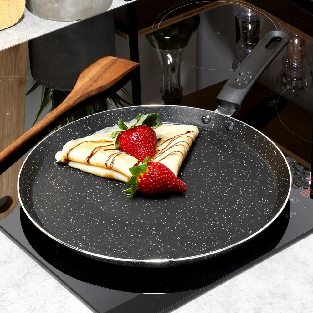 - Odpowiednia do wszystkich kuchenek oraz zmywarki - Przystosowana do kuchenek gazowych, elektrycznych, ceramicznych oraz indukcji. Patelnia jest łatwa w utrzymaniu czystości, nadaje się do mycia w zmywarce do naczyń. Wąskie brzegi patelni ułatwiają wylewanie ciasta, podważanie i obracanie naleśników.
