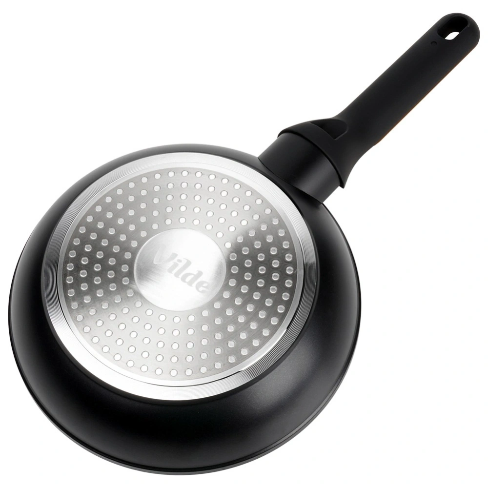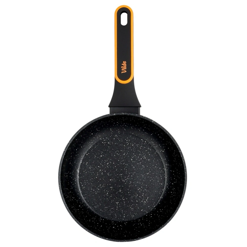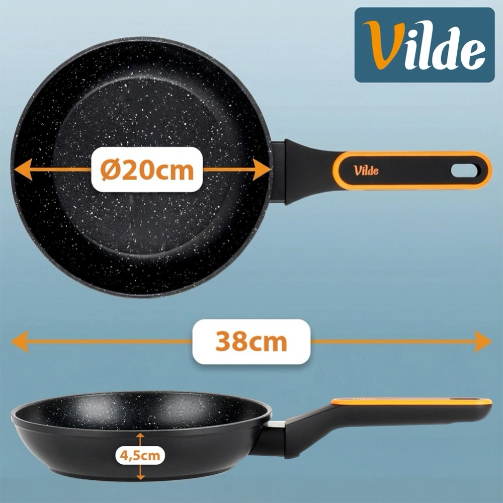 Nieprzywierająca patelnia o wyjątkowym, ponadczasowym wyglądzie. Patelnia posiada modny design, dzięki czemu efektownie prezentuje się w kuchni. Niezastąpiona w każdej kuchni, ułatwia gotowanie, smażenie i duszenie potraw. Wykonana z najwyższej jakości materiałów, odpowiednio użytkowana posłuży długie lata. Oryginalny produkt marki Vilde z linii Terruna. Wyprodukowano zgodnie z europejskimi standardami.