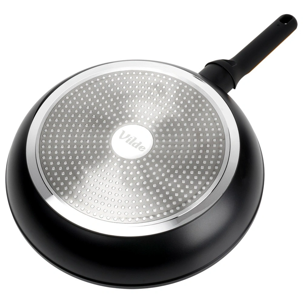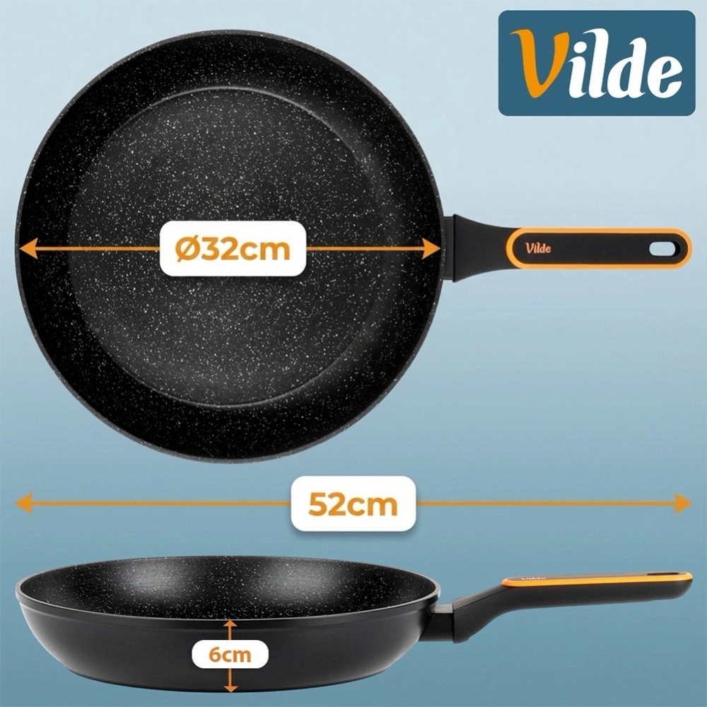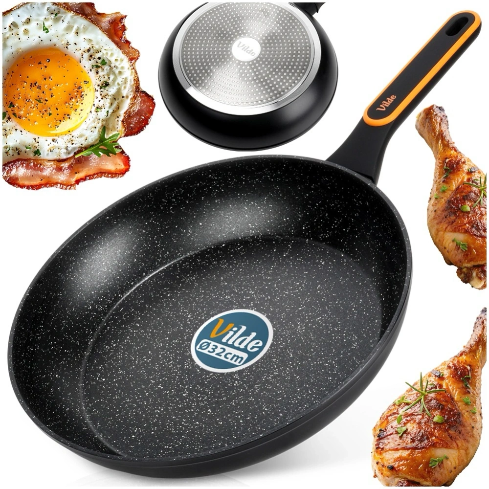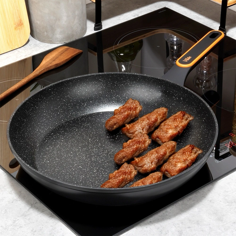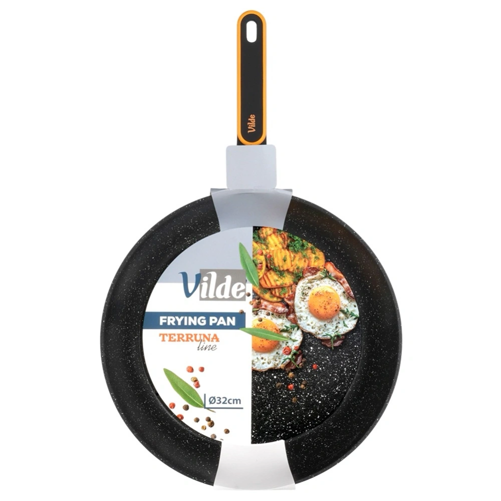 Nieprzywierająca patelnia o wyjątkowym, ponadczasowym wyglądzie. Patelnia posiada modny design, dzięki czemu efektownie prezentuje się w kuchni. Niezastąpiona w każdej kuchni, ułatwia gotowanie, smażenie i duszenie potraw. Wykonana z najwyższej jakości materiałów, odpowiednio użytkowana posłuży długie lata. Oryginalny produkt marki Vilde z linii Terruna. Wyprodukowano zgodnie z europejskimi standardami.