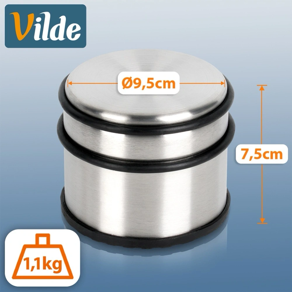 - Stoper do drzwi wykonany ze stali nierdzewnej. Stoper jest ciężki i nie wymaga montażu. Posiada gumowe elementy, które zabezpieczą drzwi oraz podłogę przed uszkodzeniem.