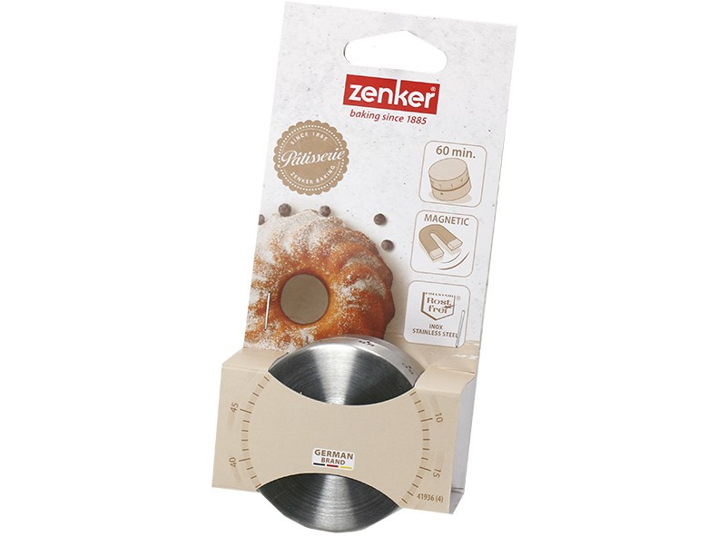 - Minutnik marki Zenker mierzący czas do max. 60 minut. Estetyczny wizualnie z praktycznym magnesem pozwalającym na przymocowanie go do drzwi lodówki.