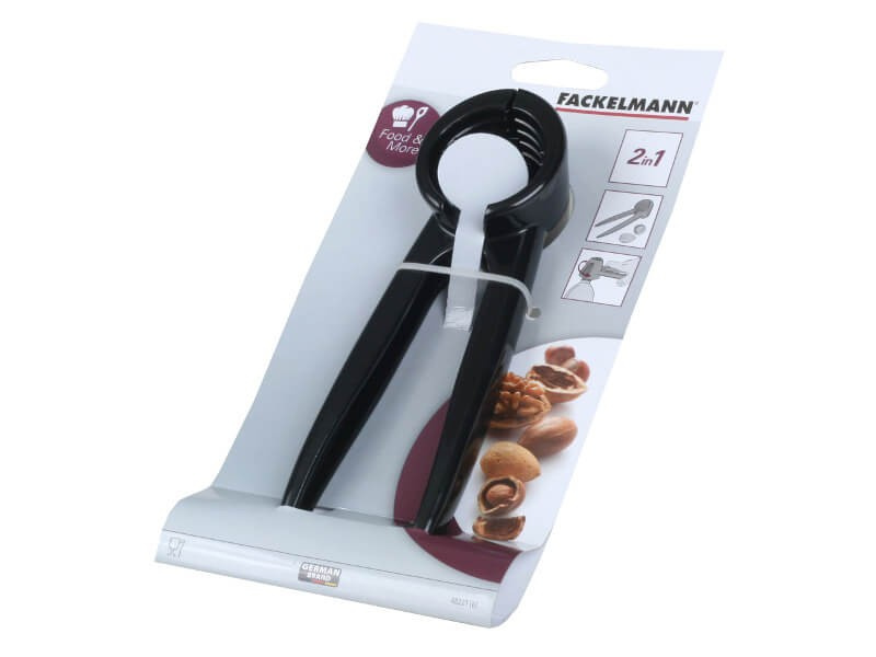Dziadek do orzechów niemieckiej firmy Fackelmann posiada dodatkowe funkcje otwieracza do szampana i zakręcanych butelek. Wykonany jest z aluminium lakierowanego na kolor czarny. Stożkowa budowa zapobiegnie rozpryskiwaniu się skorupek.