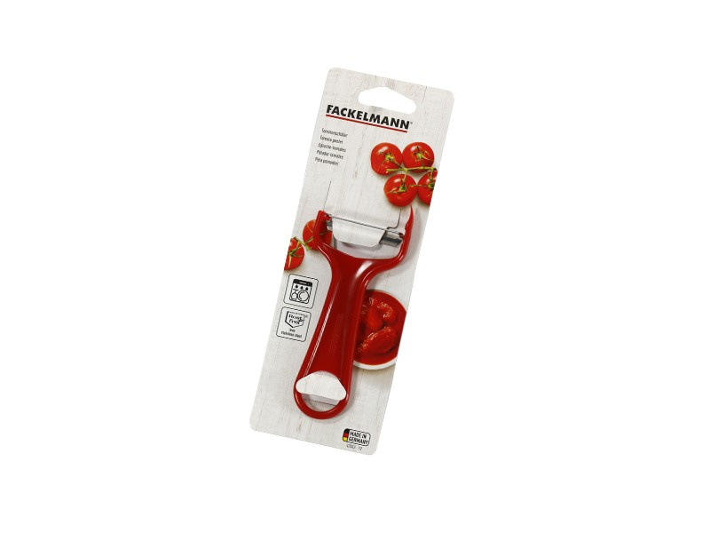 Obieraczka do pomidorów niemieckiej firmy Fackelmann posiada wykonane z najwyższej jakości stali nierdzewnej ostrze, które bez trudu oczyści ze skóry pomidory, a także owoce (np. kiwi) i warzywa z delikatną skórką.