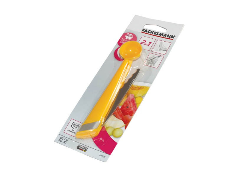 - Nóż do melonów z funkcją wykrajania kulek niemieckiej firmy Fackelmann. Wykonany ze stali nierdzewnej. Można myć w zmywarce!