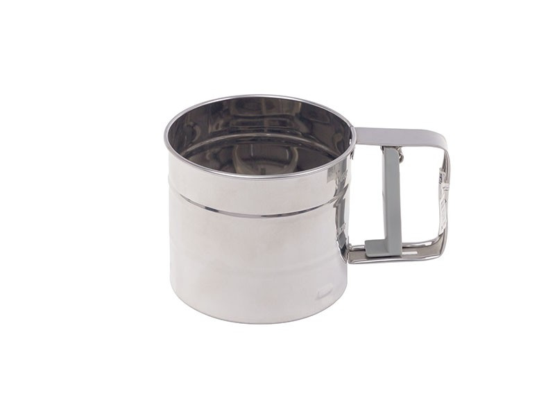 - Przesiewacz marki ZENKER niemieckiej firmy Fackelmann został wykonany ze stali nierdzewnej polerowanej na wysoki połysk. Posiada skalę pomiarową do odmierzania ilości mąki lub cukru pudru – maksymalna pojemność 300 g.