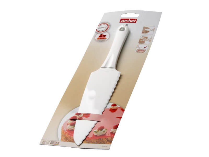 Posiada jednostronne ostrze, dzięki któremu w łatwy sposób można pokroić tort, jednocześnie nie rysując powierzchni blachy. Szeroka szpatuła umożliwia nałożenie ciasta na talerzyk.