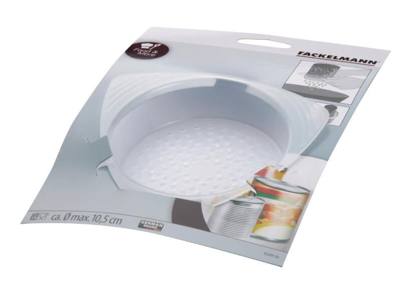 Praktyczne sitko do potraw w puszkach niemieckiej firmy Fackelmann. Posiada ergonomiczne uchwyty, dzięki czemu z łatwością można odcedzić dany produkt - groszek, kukurydzę i wiele innych.