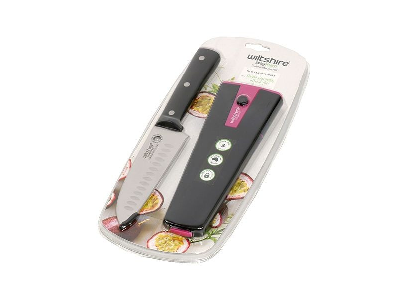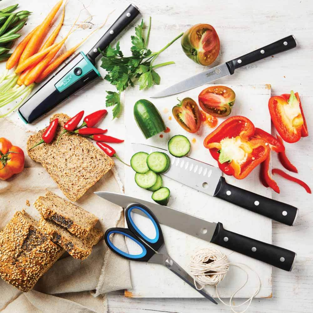 Uniwersalny nóż kuchenny niemieckiej firmy Fackelmann – WitlShire, idealnie sprawdzi się w każdych kuchennych warunkach. Nóż wyposażony został w futerał z ostrzałką, który zapewni perfekcyjną ostrość w każdej chwili.