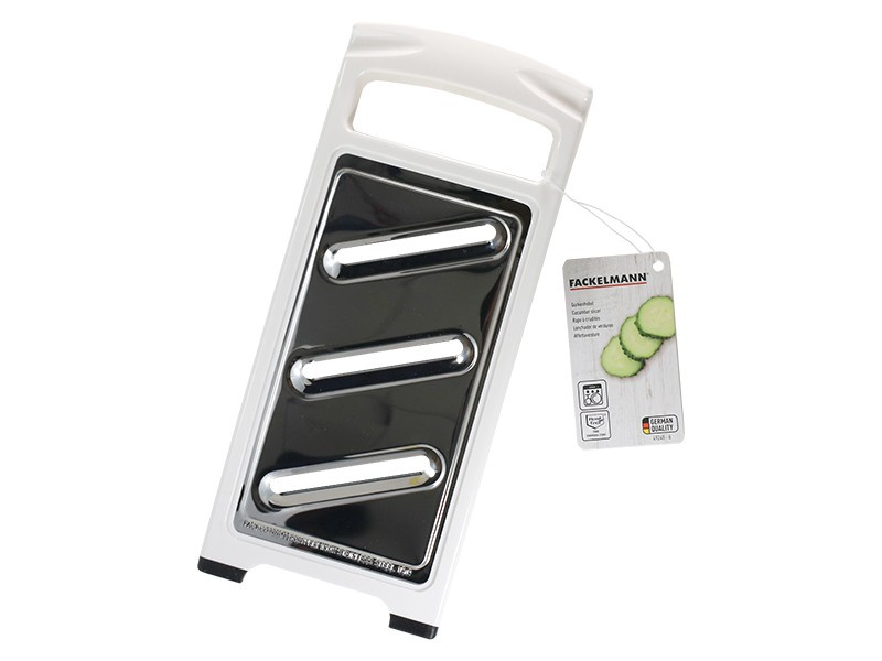- Szatkownica do warzyw niemieckiej firmy Fackelmann została wykonana z wytrzymałego tworzywa, a jej ostrze natomiast ze stali szlachetnej dla zwiększenia precyzji cięcia warzyw.Szatkownica idealnie sprawdzi się w każdej kuchni z łatwością skroi np. ogórki.