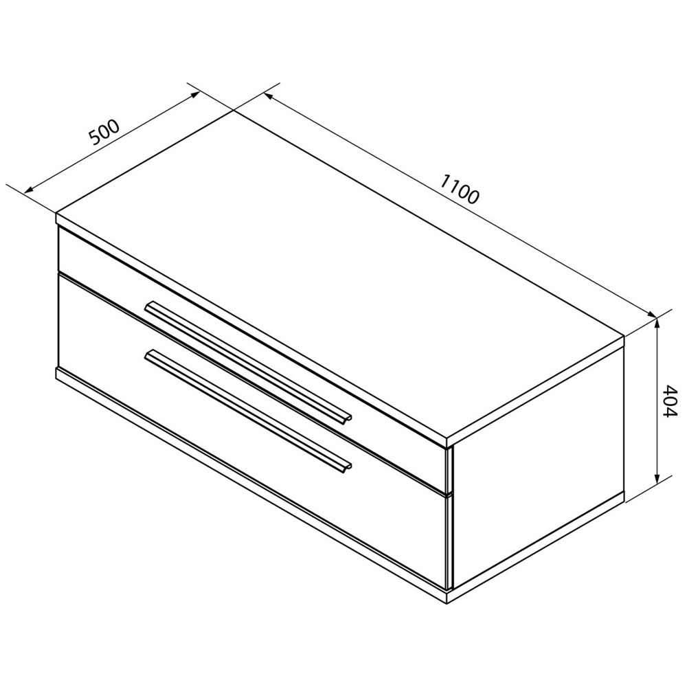 - Szafka łazienkowa pod umywalkę o szerokości 110 cm. Korpus oraz front w kolorze dąb naturalny.