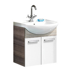 Szafka łazienkowa 110 cm biały + dąb naturalny z ceramiczną umywalką nablatową 60 cm Stanford Fackelmann
