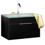 Szafka łazienkowa 110 cm biały + dąb naturalny z ceramiczną umywalką nablatową 60 cm Stanford Fackelmann