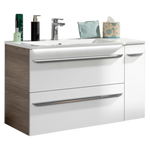 Zestaw szafka łazienkowa + boczna prawa z umywalką z konglomeratu 100 cm szary dąb + biały Luxor Fackelmann