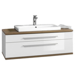 Szafka łazienkowa 110 cm z umywalką ceramiczną biały + dąb naturalny Stanford Fackelmann